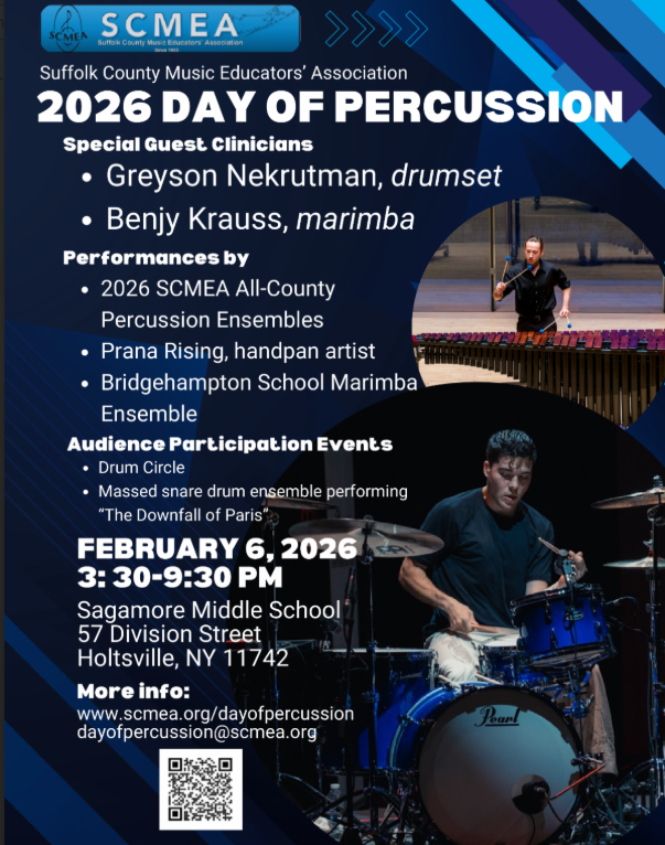 We are excited to share that the following students will be participating in this year’sLong Island Day of Percussion this Friday, February 6th, @ Sagamore Middle School! Eli McCleland, Chase Chmie...