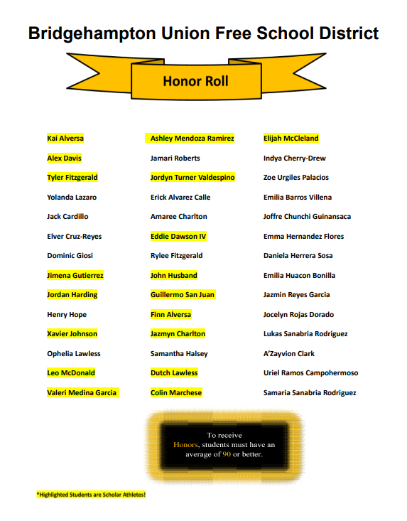 Congratulations High Honor Roll, Honor Roll, and Scholar Athlete Recipients!